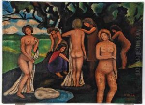 Bathers Oil Painting by Bela Kadar