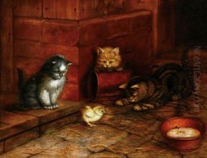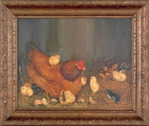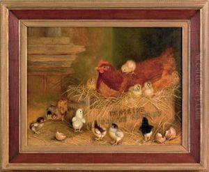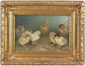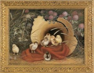Fifteen Chicks In A Basket Surrounded By Daisies