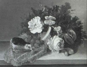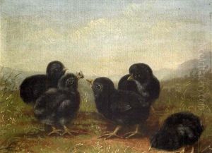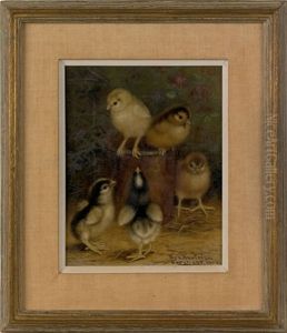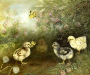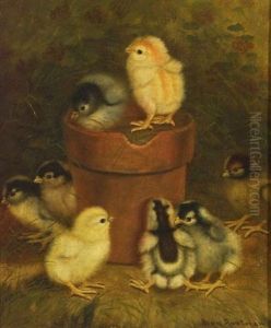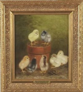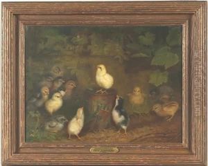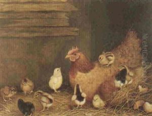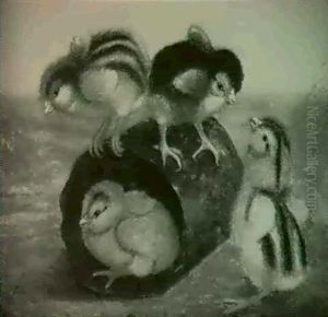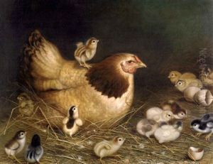Scene Of A Hen And Her Eleven Chicks, With Empty Shells In The Foreground