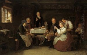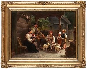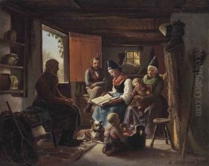 Allmogeinterior Med Sittande Kvinna Och Barn