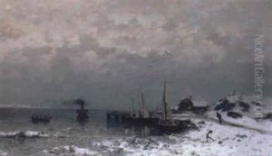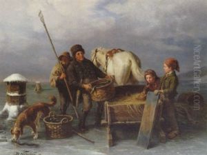 Mor Och Barn Pa Isen - Vintermotiv I Aftonljus