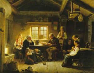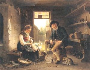 Allmogeinteri"r Med Tva M,n Vid Ett Bord