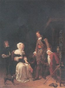 Interi"r Med Kvinna Samt Man Som Rakar Sig