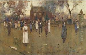 En Sondagsmorgon Vid Ronnebyan Oil Painting by Bengt Nordenberg