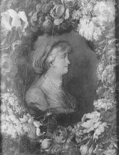 Buste De Femme De Profil Dans Une Guirlande De Fleurs