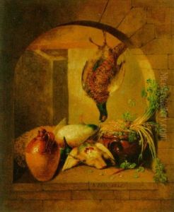 Still Life Of Game And Vegetalbes In A Larder By Candleight
