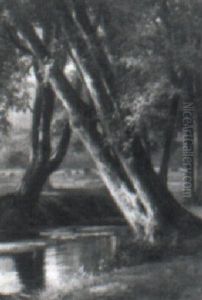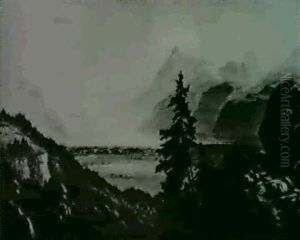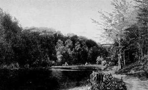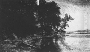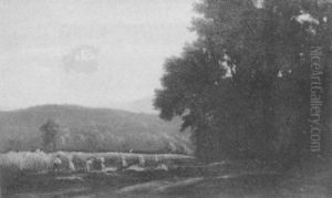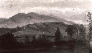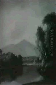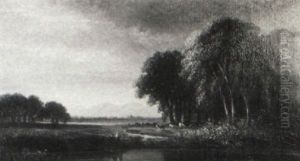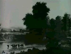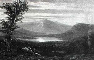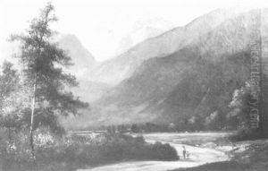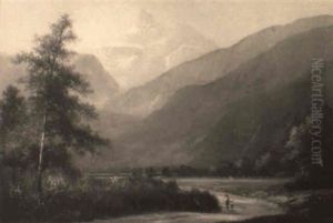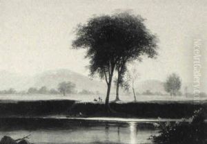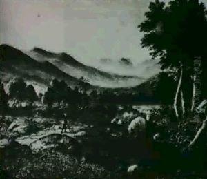 A Farmer At A Riverside With Mountains The Background (new Hampshire?)