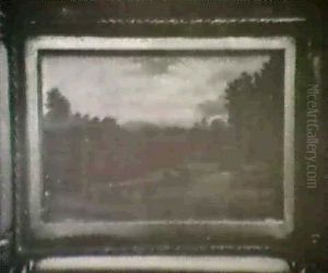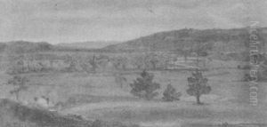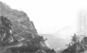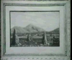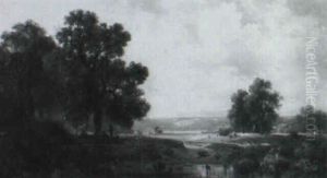 The Day's Labors/ A Panoramic Landscape With Figures, Cottages And Wagon
