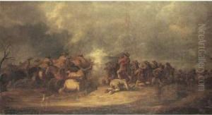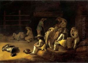 A Guardroom Interior, With Soldiers Relaxing, Playing Cards, And Smoking