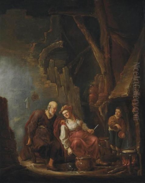 A Kitchen With Peasants Cooking