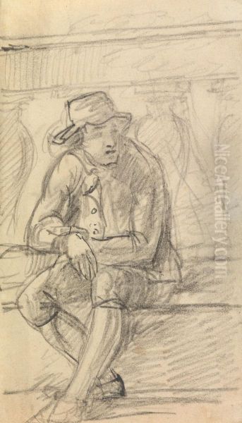 Figure Study of a Young Man, with a Hat, Sitting Outside