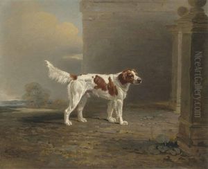 A White Setter In A Landscape By A Gateway