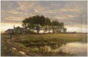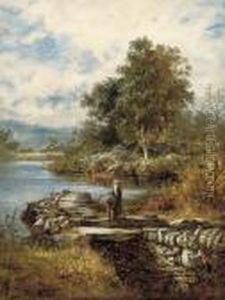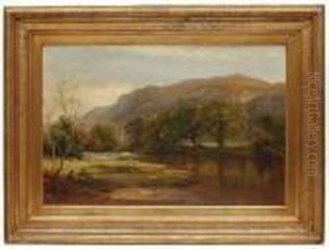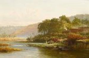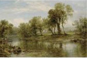 A Verdant River Landscape With Figures On Thebank