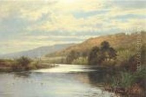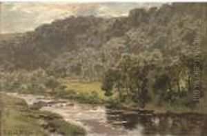 A Welsh River With Fisherman