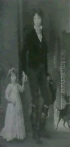 Un Homme Tenant Sa Fille Par La Main Saluant Dominique-vivant Denonavec Des Etudes Subsidiaires De L'homme En Train Des'incliner