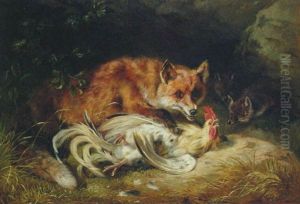 Fuchsf,he Mit Jungfuchsen Vor Dem Bau
