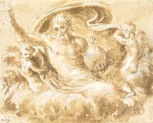 Annunciazione Con Il Padre Eterno E I Santi Pietro E Giovanni Battista In Lontananza