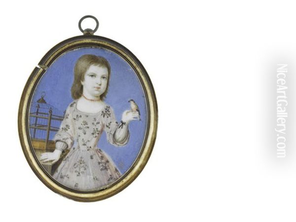 Roger Whitmore (1719-1740), Aged 3, His Right Hand Resting Upon A Table With Gold Bird Cage, A Finch Perched On His Left Hand, Wearing Mauve Dress Embroidered With Floral Motifs