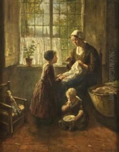 The Sewing Lesson Oil Painting by Bernard Johann De Hoog