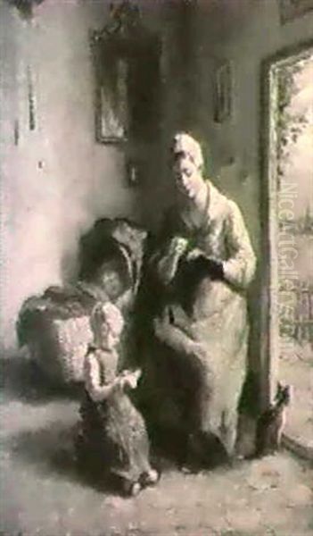 Darning Socks Oil Painting by Bernard Johann De Hoog