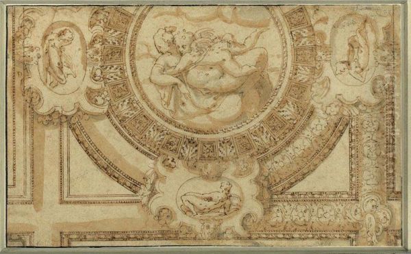 Design For A Ceiling Decoration With Venus And Cupid Embracing