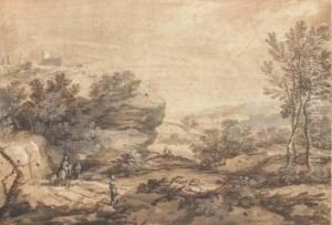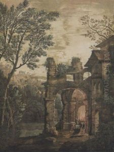 A Classical Capriccio Of An Italian Town With Goldsmith And Other Figures In The Foreground