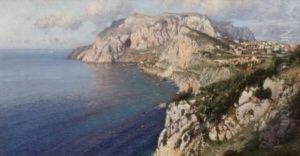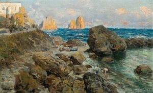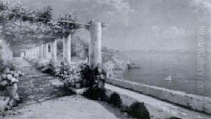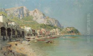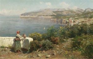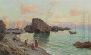 A View Of The Bay Of Capri With Fishing Smacks And Boys Playing Cards On The Beach In The Foreground