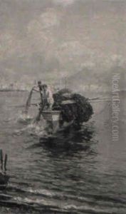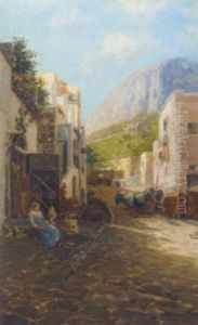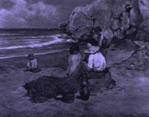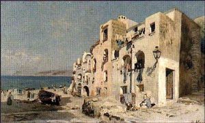 Fisherboys Playing Cards Along The Coast With The Bay Of Naples Beyond