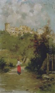 Partie Auf Capri. Blick Auf Einen Bergweg, Von Einem Gebirgszug Hinterfangen