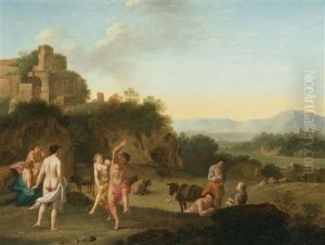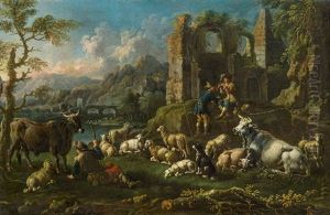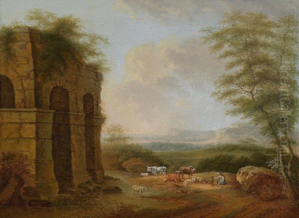 Coppia Di Paesaggi Meridionali Con Rovine E Figure Di Pastori