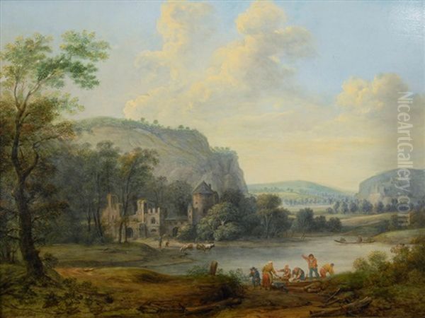 River Landscape With Fishermen