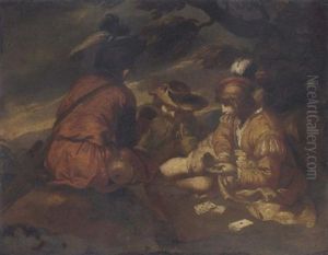 Youths Playing Cards In A Landscape