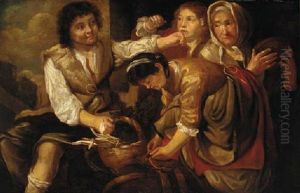 A Roman Street Scene With Peasants Eating And Drinking, Possibly Representing The Five Senses