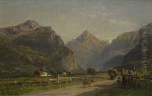 Gebirgstal Mit Bauerlicher Figurenstaffage.