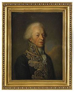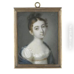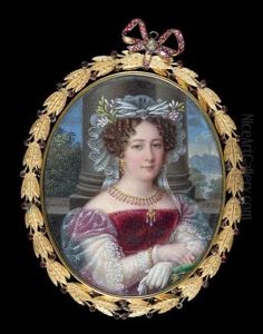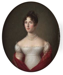 Portrait Of A Lady In A White Dress And A Red Cashmere Shawl Around Her Shoulders