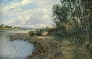 Uferweg An Der Elbe (?), Auf Dem Wasser Ein Dampfschiff