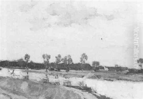 River Scene With A Barge Oil Painting by Bertram Walter Priestman