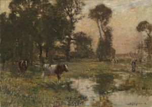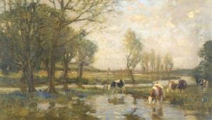 Cattle Watering In A Summer Landscape