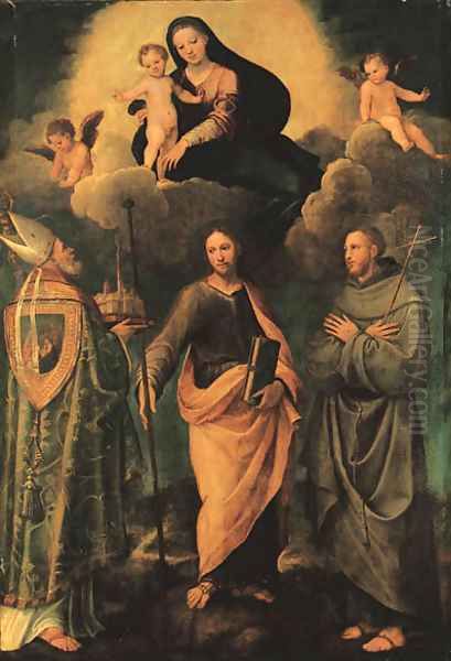 The Madonna and Child appearing to Saint Petronius of Bologna, the Apostle Saint James the Greater, and Saint Francis of Assisi