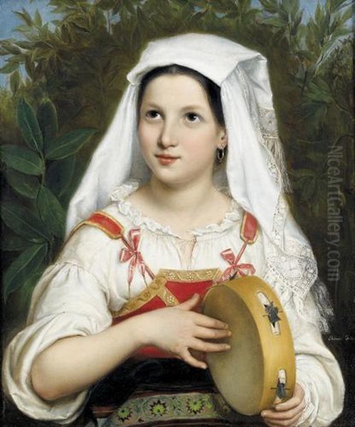 Junge Romerin Mit Tamburin.