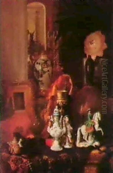 Porcelaines De Saxe, Calice, Tapis De Smyrne, Et Autres     Objects De La Collection Du Comte Welles De La Valette Oil Painting by Blaise Alexandre Desgoffe