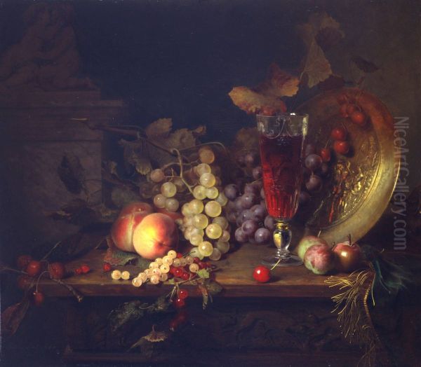 Still Life With Fruit, a Glass of Wine and a Bronze VesselFrancais : Nature morte aux fruits, a la coupe de vin et a la vaisselle en bronze