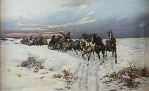 Bring the timeless beauty of Bohdan von Kleczynski's Figures In A Horse Drawn Sleigh In A Winter Landscape into your home with a handmade oil painting reproduction. Carefully recreated on canvas by skilled artists using traditional techniques, this piece captures the delicate brushwork, subtle light, and vibrant color of the original masterpiece. With museum-level quality and rich texture, it brings elegance and artistic depth to any space. Enjoy free shipping and make this masterpiece a part of your personal collection.