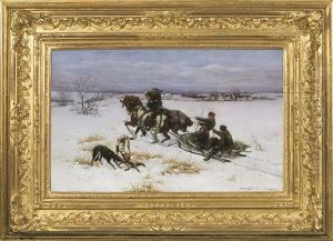 Figures In A Horse Drawn Sleigh In A Winter Landscape