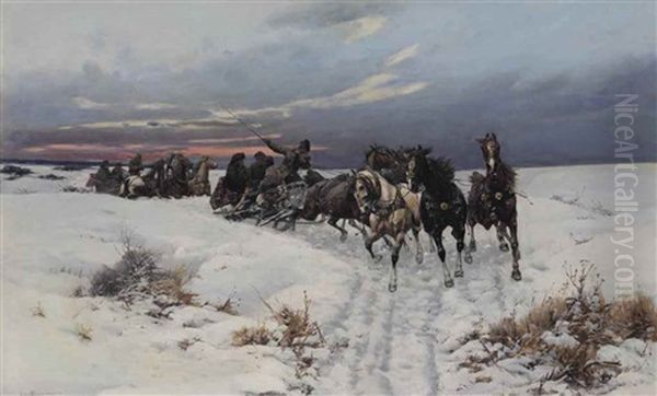 Bring the timeless beauty of Bohdan von Kleczynski's Sleigh Ride Through A Winter Landscape into your home with a handmade oil painting reproduction. Carefully recreated on canvas by skilled artists using traditional techniques, this piece captures the delicate brushwork, subtle light, and vibrant color of the original masterpiece. With museum-level quality and rich texture, it brings elegance and artistic depth to any space. Enjoy free shipping and make this masterpiece a part of your personal collection.