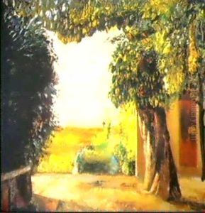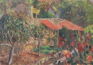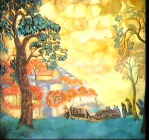 Mountainlandscape, Gouache On Paper, Signed "boris Grigoriev", Lower Right,bears Inscription On Verso "to... Friends... Mr. & Mrs. Isaacsiegmeister... Mr. & Mrs. Poliovich", 10.5" X 14.5" ,matted And Framed, Overall Good Condition, Not Exa