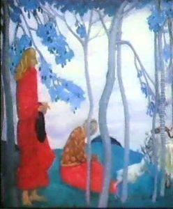 Mythologische Szene Mit Einem Sitzenden Paar Und Einem Liegenden