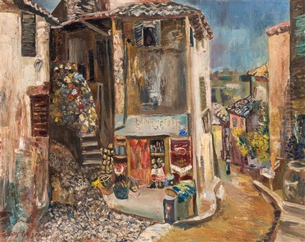 Epicerie Du Village Oil Painting by Boris Dmitrievich Grigoriev