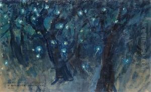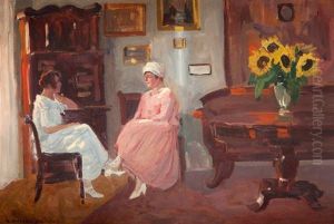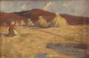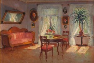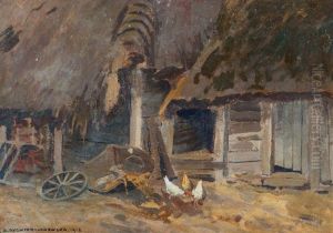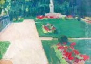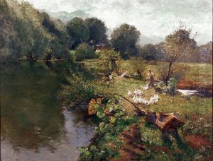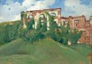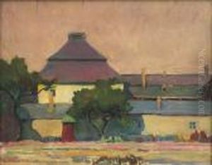 Manor House And Woman In Purple Dress With Autumn Foliage