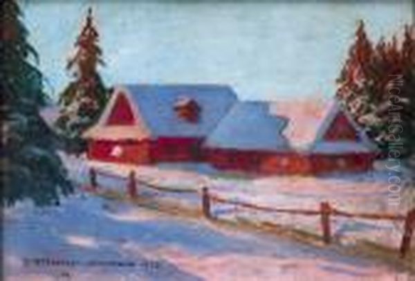 Zimowy Pejzaz Z Chatami